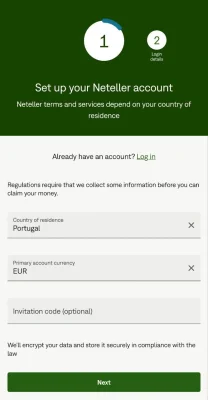 Alinha a moeda da conta Neteller com a moeda da casa de apostas